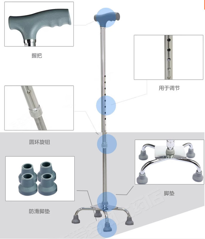 The Four Leg Walking Aid Crutches help users move confidently and safely. Perfect for limited mobility, post-surgery recovery, balance improvement, and daily walking support. Features include ergonomic hand grips, durable construction, easy height adjustment, and slip-resistant feet.
